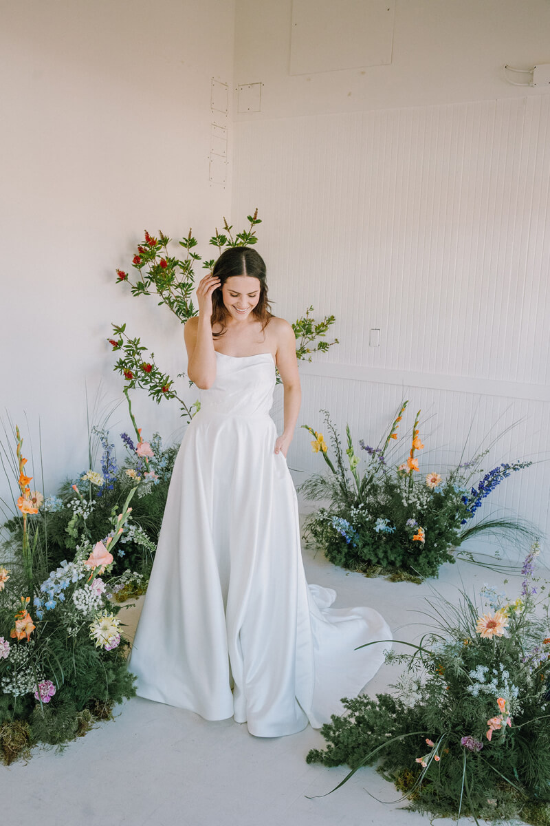 A classic dress with a modern twist, the Clementine is a satin showstopper. Paired best with a detachable bow, a pearl veil or a French Alençon veil, it can be dressed up as easily as it can be kept minimalistic chic.